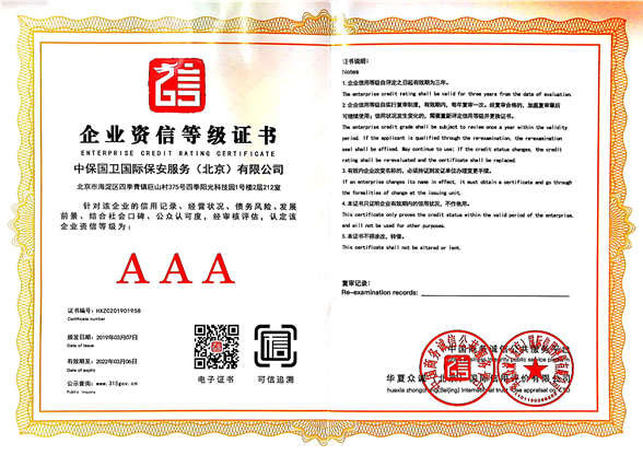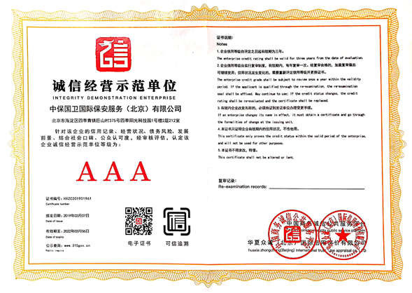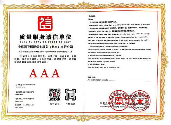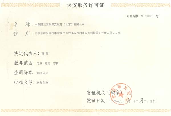 中保國(guó)衛(wèi)國(guó)際保安服務(wù)(北京)有限公司,屬中保國(guó)衛(wèi)集團(tuán)旗下子公司。能全方位的為大型客戶(hù)提供優(yōu)質(zhì)的安保、押運(yùn)服務(wù),是集人防和技防于一體的新型正規(guī)化綜合安保押運(yùn)服務(wù)企業(yè),提供人防、物防、技防、聯(lián)網(wǎng)報(bào)*、非武裝押運(yùn)等安防相關(guān)的一站式服務(wù)。 公司在國(guó)內(nèi)多省設(shè)立有分公司及分支機(jī)構(gòu),著重提升安全押運(yùn)、智能技術(shù)押運(yùn)及安全技術(shù)防范相關(guān)的服務(wù),業(yè)務(wù)范圍覆蓋全國(guó)一、二線(xiàn)城市、港澳地區(qū)以及海外地區(qū)。安保方面主要為政府機(jī)構(gòu)、金融機(jī)構(gòu)、企事業(yè)單位、醫(yī)療衛(wèi)生、高等院校、工業(yè)園區(qū)、大型商場(chǎng)、高檔住宅、智能商務(wù)樓、大型活動(dòng)提供門(mén)衛(wèi)、守護(hù)、巡邏、押運(yùn)(非武裝)、安全檢查、保安特勤、私人護(hù)衛(wèi)、消防中控、安全技術(shù)防范、遠(yuǎn)洋護(hù)航等全方位服務(wù),同時(shí)面向國(guó)際市場(chǎng),為中資企業(yè)在“一帶一路”沿線(xiàn)國(guó)家投資提供境外安保服務(wù)。 >> 更多內(nèi)容 |